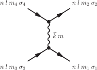 Using angular momentum as a basis the scattering event described is given by the diagram on the left. An angular momentum $\vec{k}$ with a projection $m$ on the $z$ direction is exchanged.