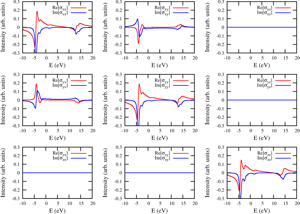 The example below calculates the conductivity tensor at the Ni $L_{2,3}$ edge. We show two different methods. The first calculates 9 spectra and by linear combining them retrieves the tensor. Method two uses a Block algorithm.