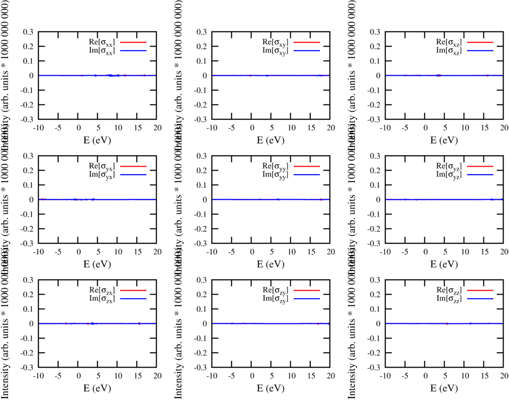 | $2p$ to $3d$ excitations for all possible polarizations represented as a conductivity tensor. Calculated using a block Lanczos method. |