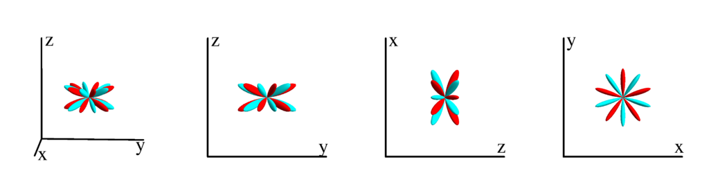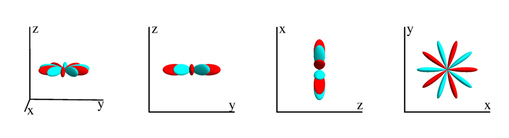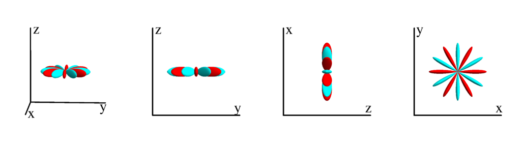 $$ Z_{6}^{(5)}=\frac{3}{16} \sqrt{\frac{1001}{2 \pi }} \sin ^5(\theta ) \cos (\theta ) \cos (5 \phi )\\ \phantom{Z_{6}^{(5)}}=\frac{3}{16} \sqrt{\frac{1001}{2 \pi }} x z \left(x^4-10 x^2 y^2+5 y^4\right) $$