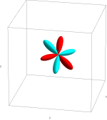 $$\psi(\theta,\phi)=\phantom{\sqrt{\frac{1}{1}}}$$ $$-\frac{1}{8} \sqrt{\frac{105}{2 \pi }} \sin (\theta ) (\sin (\phi )+\cos (\phi )) \left(\sin ^2(\theta ) \sin (2 \phi )-2 \cos ^2(\theta )\right)$$